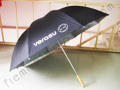 ร่มกอล์ฟพรีเมี่ยมสกรีนโลโก้ Verasu สีบรอนซ์ สีดำของร่มทำให้โลโก้โดดเด่นมาก Premium Studio จัดทำร่มกอล์ฟพรีเมี่ยม ร่มพรีเมี่ยมจะแจกตอนไหน เทศกาลอะไรก็ได้ทั้งนั้น